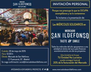 El próximo miércoles 20 de mayo a las 12h. el Mercado de San Ildefonso presentará una iniciativa pionera en nuestro país: “Los Miércoles Solidarios”. Un proyecto en el que, por primera vez, ocio, gastronomía y solidaridad se darán la mano, y que permitirá impulsar económicamente el trabajo de una Entidad No Lucrativa distinta cada semana.
