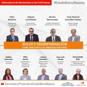La agencia de noticias Servimedia y Estudio de Comunicación organizan el miércoles 8 de noviembre, a las 11.30 horas, un acto en el que presentarán los resultados de la investigación sobre ‘Bulos y Desinformación. Cómo afectan a las personas mayores‘. El ministro en funciones de la Presidencia, Relaciones con las Cortes y Memoria Democrática, Félix Bolaños, asistirá y participará … Leer más