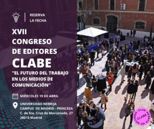 CLABE celebrará su XVII Congreso de Editores y Periodistas el 19 de abril en la Universidad Nebrija (Campus de Madrid-Princesa) bajo el lema ‘El futuro del trabajo en los medios’. El comité organizativo del Congreso trabaja para ofrecer el mejor programa y ponentes a los asistentes. Entre las personalidades que ya están confirmadas se encuentran: … Leer más